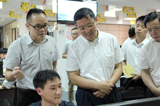 2015年8月19日下午,福建省委組織部常務(wù)副部長(zhǎng)、非公企業(yè)黨工委書(shū)記袁毅,在中共泉州市委常委、組織部長(zhǎng)陳沈陽(yáng),泉州市委組織部副部長(zhǎng)張翼翔,豐澤區(qū)人民政府區(qū)長(zhǎng)朱啟平,豐澤區(qū)委組織部長(zhǎng)駱紅,領(lǐng)SHOW天地黨委書(shū)記鄭巍萍陪同下,蒞臨了訊網(wǎng)科技參觀考察。