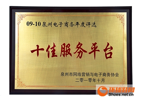 2010年10月29日,由泉州市科學技術協會主辦,泉州市網絡營銷與電子商務協會承辦的第八屆泉州市科學技術協會年會暨2010年泉州市網絡營銷與電子商務協會年會在泉州大酒店召開。本次會議除市政協副主席/市科協主席駱沙鳴、市委常委/組織部部長林武等市政府、市科協及電子商務協會相關領導悉數出席外,還盛情邀請了中科院院士郭光燦、福建電子商務協會專家委員會主任陳曙光、臺灣英特網營銷研究協會秘書長陳定震、艾瑞咨詢集團華南區咨詢總監蔣偉偉、上海商派網絡(ShopEX)渠道總監王文明等數百名業界知名專家及行業企業家參與。環球鞋網作為本次年會的支持媒體之一,應邀出席并榮獲“2009-2010十佳服務平臺”、“2009-2010年優秀企業獎”兩大獎項,福建訊網網絡科技有限公司總經理林文佳先生被評為“2009-2010年度泉州電子商務十佳領軍人物”。