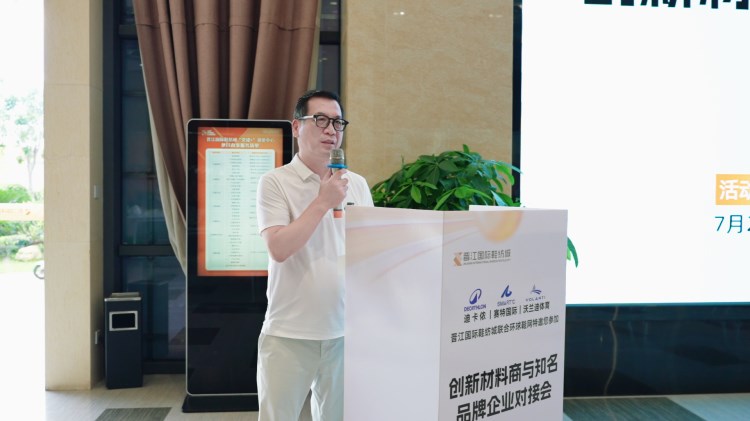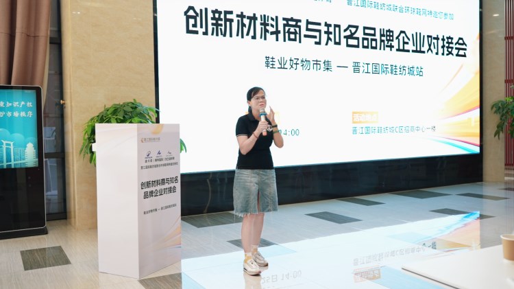 “創新材料商與知名品牌對接會暨鞋業好物市集第二站-晉江國際鞋紡城站”(以下簡稱“對接會”)于晉江國際鞋紡城舉辦,本場對接會由環球鞋網與晉江國際鞋紡城聯合主辦。福建晉江鞋紡城有限責任公司總經理李宵還、陳埭鞋材商會會長丁鶴鳴、迪卡儂鞋部創新項目Orange.Chen(女士)與Jello.Huang、賽特國際總經辦副總經理彭東、產品中心材料規劃師田風領、研創部首席技術專家王淵博、沃蘭迪品牌創始人周健及其總經理童希、海泰客(廈門)品牌管理有限公司執行董事張煒,以及來自廣州、杭州、臺灣等全國各地的創新材料商共同參與了此次盛會。