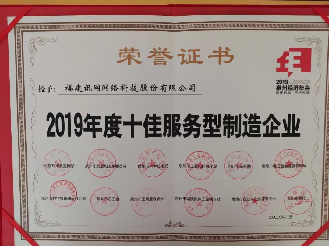 訊網(wǎng)網(wǎng)絡(luò)榮獲泉州市十大服務(wù)型制造企業(yè)